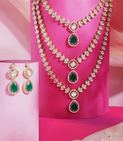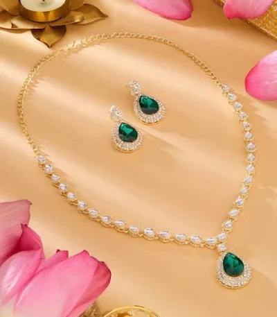 Salty Kiara Advani Green Emerald Necklace and Earrings Set